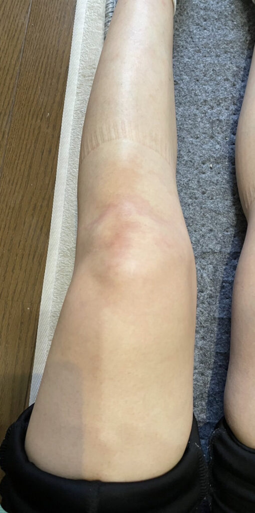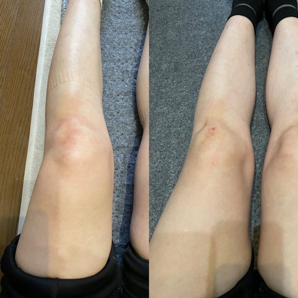 この方法により、膝の腫れが徐々に引き、歩行もだいぶスムーズになっていきました。
